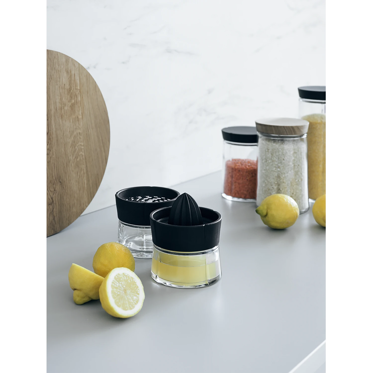 A practical grate iron with a glass container beneath which collects the grated parmesan cheese so that you can easily serve it at the dinner table or store in the fridge.